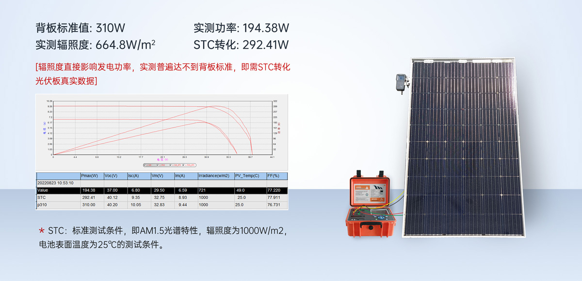 條件下該指標般在2%以內。現(xiàn)場測試時,請在太陽光照穩(wěn)定條件下進行IV曲線測試,并確保輻照度探頭與穩(wěn)定探頭安裝可靠,否則會因為輻照度測試偏差及溫度偏差造成較的轉換誤差。